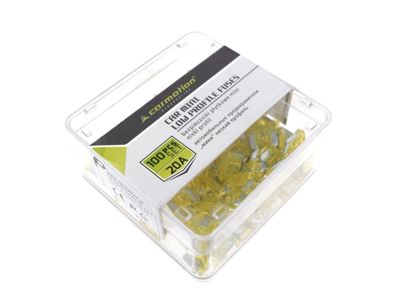 Bezpieczniki płytkowe mini niski profil 20A, 100 szt.